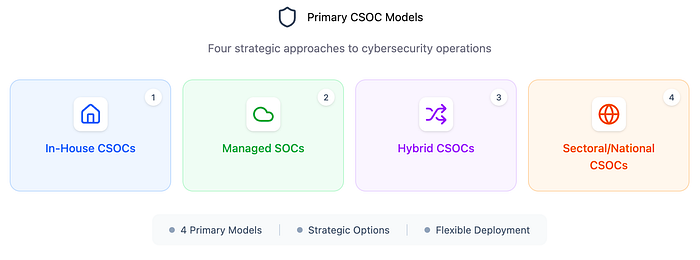 There are four primary models of Cyber Security Operations Centers (CSOCs) commonly adopted in India, each suited to different organizational needs and maturity levels.